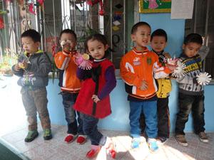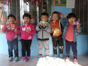 小朋友知道怎么用纸杯制作菊花吗?第一步,先用油画棒将纸杯外壁涂上自己喜欢的颜色,然后从杯口开始,用剪刀沿纸杯壁上的引导线剪出细长的小条若干,最后再用小木棒将每条长条卷曲,菊花就做好啦!今天,中二班的每位小朋友都制作了漂亮的纸杯菊花!