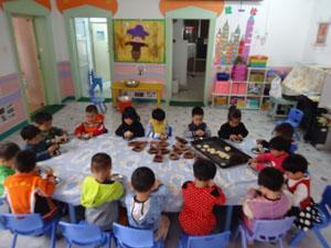 哇!小一班的小朋友们有口福咯!今天我们自己制作了好吃的点心,先看看我们所需的用具盘子和模子、食材豆沙还有面点老师给我们调制好的面。在老师一步一步的带领下,团面、压饼加陷、团好放进模子压好后倒出。看到我们的成品有木有流口水啊!