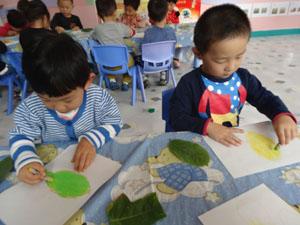看小一班的小朋友们又开始作画了。看到叶子了吗?今天我们不光认识了叶子,了解叶子简单的外形。并通过真实的树叶画出自己喜欢的叶形。看我们的成品你喜欢吗?