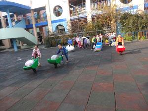 今天大三班的小朋友上了一节户外活动《运粮》,这个游戏锻炼幼儿坚持10 米往返跑,提高小朋友们的速跑能力和身体耐力,大家分组比赛抢运粮食,大家你争我抢,将粮食运到仓库里,大家好高兴,好开心呀!