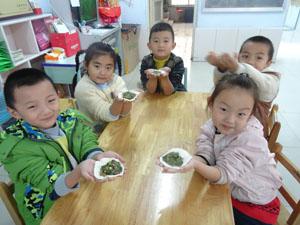小朋友们亲手制作了月牙饼,从拔菜、洗菜、择菜到调馅子、做面饼、捏月牙,再到最后的使用电饼铛煎制月牙饼,都是小朋友们有序的完成的,瞧!他们吃的津津有味。此活动锻炼了幼儿动手操作能力,享受了成功的喜悦!
