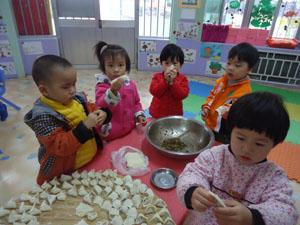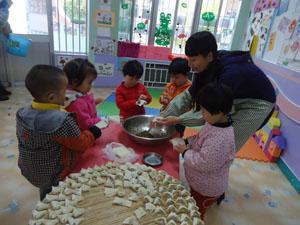 你们知道馄饨怎么做吗?小二班的小朋友们都知道了。提前一天我们就把乌塌菜拔好,洗好了;今天我们一起调馅,包馄饨当然还有煮馄饨和吃馄饨喽!看我们的劳动成果,大家一起真开心。。。
