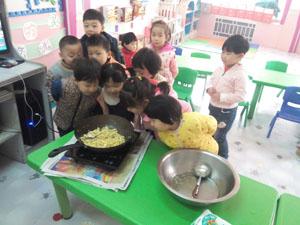 菠菜宝贝第二季来了!告诉小朋友们菠菜宝宝长大了,小朋友们来采摘,制作香喷喷的饭菜,今天我们和老师一起制作好吃的菠菜鸡蛋,还有香香的菠菜盒子,又洗又炒又来吃,真的好开心。快为小三班的娃娃来点赞吧。