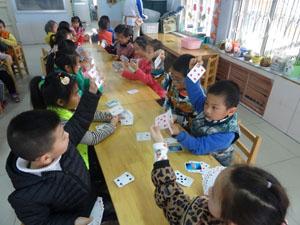 大二班的小朋友们对扑克牌非常感兴趣,我们利用扑克牌和小朋友做了很多游戏,颜色分类、数字分类和简单的扑克牌游戏,锻炼了幼儿对数字的认知和数量的比较多少,锻炼幼儿的逻辑思维能力和大脑的反应能力。
