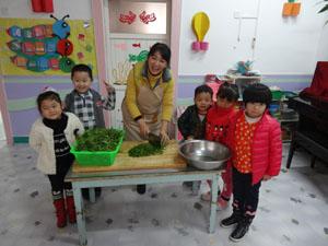 今天中一班的宝贝们进行了一次有意义的活动。他们到种植园自己动手采摘茼蒿,帮老师洗菜,扒蒜,老师大展身手炒了一道好吃的菜—蒜末茼蒿。