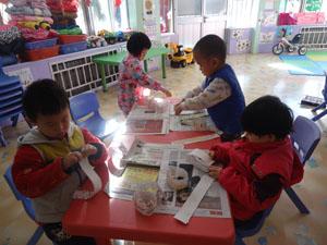 寒冷的天气阻挡不住小二班宝贝们玩轮胎的热情,看,宝贝们要开始自己制作车轮了。首先在白纸上画上轮胎的条纹,然后把它们撕成一条一条的,最后用胶棒粘成滚滚的轮胎。车轮完成了,我们一起玩车轮滚滚的游戏吧!