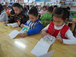 孩子们非常喜爱看小人书,于是今天孩子们把喜爱的故事一幅幅的画在了纸上,情节内容非常清晰,还标注了页码,有了故事发生的先后顺序,用订书机或针线将故事做成了小人书。此活动锻炼了幼儿的动手操作能力和创作能力。