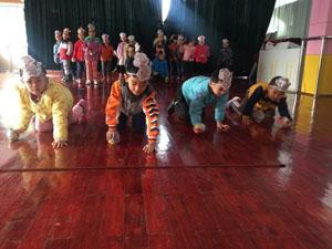 今天大三班的小朋友们自制报纸球,来做“打败蜘蛛精”的游戏,通过这个游戏提高了小朋友们的投准能力和目测力,能够肩上挥臂投准目标,大家都非常的认真,通过比赛的形式,小朋友们争先恐后,最后苹果队赢得了投准目标的冠军,大家一起为他们加油吧!