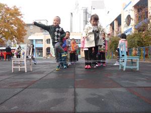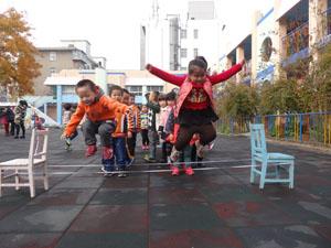 小蚱蜢学跳高,一跳跳上狗尾草,腿一伸,脚一跳,哪个有我跳得高?瞧!中三班的小朋友一边说着儿歌,一边学习双脚跳跃障碍,锻炼了小蚱蜢们的勇气,这个活动幼儿自由练习向上跳跃,通过跳皮筋、设置障碍体验到了跳跃带来的快乐!