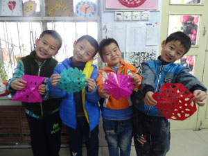 剪窗花是我国传统的民间艺术———剪纸的一种,窗花象征的吉祥和幸福。今天我们大班小朋友在老师的指导下用不同的折叠方法剪出不同的图案。瞧,我们剪的漂亮吗?你也动手来制作吧!