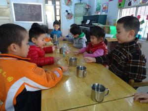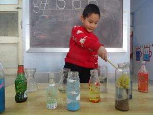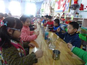 演奏会马上就要开始了,我们大二班的孩子准备了各种乐器,有的用杯子,有的用瓶子,里面装了容积不同的水,孩子们尝试用筷子进行打击,让乐器发出不同的美妙的声音。