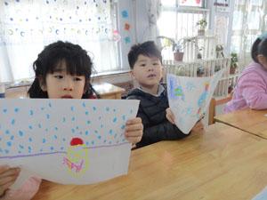 老师带我们看了《雪孩子》的动画后,带着大一班的小朋友进行了一场绘画比赛,绘画属于自己的雪娃娃,小朋友们都特别的认真,画的也非常非常的像,最后还把画展览了,大家都很高兴~