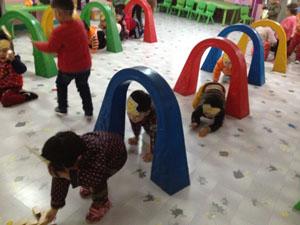 小猫钓鱼的故事大家一定都听说过,最后小花猫改掉了三心二意的毛病,看今天可爱的小猫又要去钓鱼了,但是这次可没有那么简单了,这次要通过许多的障碍,通过钻、爬等动作,到达山的另一边去垂钓,看,小三班的小朋友扮演的小花猫都多么的勇敢,都钓到了美味的小鱼,回家交给了妈妈,妈妈说劳动最光荣,好开心地一天。
