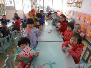 过年啦,贴画啦,满窗子,都红啦。贴个猫,贴个狗,贴个小孩儿打滴溜儿。贴个老爷爷抽烟斗。贴个老奶奶满窗走。看中二班小朋友做的多认真啊!小朋友,你也来见一个美丽的窗花吧!艺术活动《美丽的窗花》主要目的是引导幼儿尝试用挖空、折剪法等技能剪出各种图案的窗花。