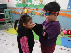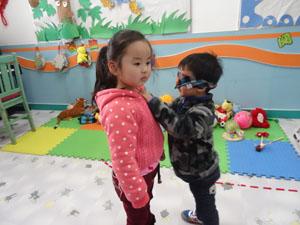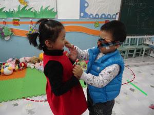 相处了一个学期的时间,同班的小朋友之间已经很熟悉了,准确叫出伙伴的名字那是不在话下,但是你闭着眼睛,你会知道ta是谁吗?小五班的孩子们在了解了班里小朋友的外貌、穿着等特征后,玩了《猜猜我是谁的》游戏,根据各种特征用摸的方式猜测对面的人是谁,锻炼了孩子们的记忆能力和判断能力。