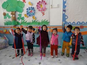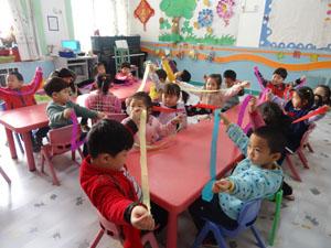 一条普通的彩色的纸带在小五班小朋友眼里,那可是个神奇的玩具,这些漂亮的彩色飘带在孩子的手里可以变换各种玩法,当作项链、围巾、发带等,还可以舞动飘带,表演一段彩带舞呢!通过活动锻炼了孩子们的反应能力和一物多玩的创新能力!
