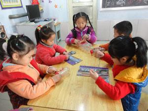 大一班的小朋友在练习系鞋带,老师告诉了小朋友方法,先把鞋带穿到孔里,练习用系蝴蝶结的方法打结系蝴蝶结。小朋友们都练习的很认真,有的小朋友还当起了小老师呢~真棒!