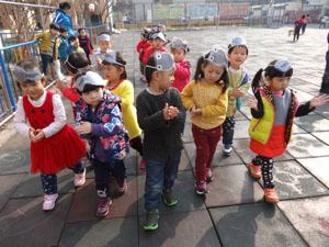 小蝌蚪,游呀游,圆脑袋,细尾巴,游来游去找妈妈,小班的孩子们扮成小蝌蚪随着儿歌和青蛙妈妈一起练习向指定的方向跑,锻炼了孩子们的反应能力和规则意识。