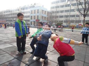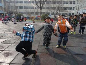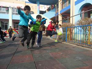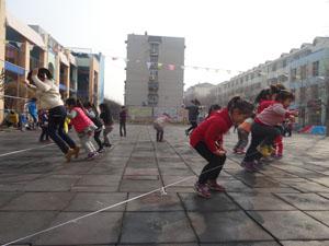 我们运用细细的皮筋变换了好多种玩法,我们共同跳跃三角形,身体不触碰皮筋双脚同时起跳,跳起来时我们像蹦跳的小袋鼠,比比谁跳的高,放松活动时我们身体后仰慢慢钻过皮筋,皮筋的高度越来越低,难度越来越大。我们玩的满头大汗,高兴极了。此活动锻炼了幼儿身体弹跳能力和骨骼伸展能力。
