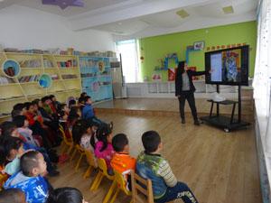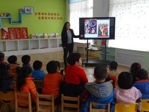 上午,苗老师早早地来到幼儿园给孩子们上课,为了给孩子们上好这节活动课,苗老师从上周就开始着手准备教案、课件和名画图片,常年给大学生上课的苗老师面对这群不一样的上课对象,依然认真、一丝不苟地做着准备工作,还为中一班的孩子们带来了贴纸、发夹和奶片等奖品,态度非常认真,脾气非常亲切。