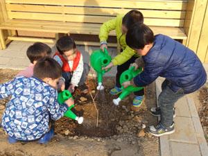 明天就是3.12号植树节了,今天小一班的小朋友们在老师的带领下,来到菜园植树咯!看我们有模有样的填着土、浇着水。我们很期待小树苗可以和我们一样快快长大哦!