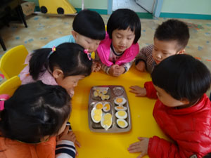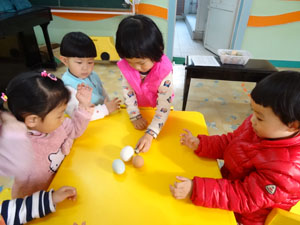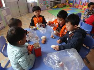 在本周“大大小小”主题中,小班宝贝们一起认识了几种大小不同的蛋,尝试着帮鹅蛋、鸭蛋、鸡蛋和鹌鹑蛋排队,自己动手剥掉了蛋壳,一起发现了这些蛋都有蛋清、蛋黄和蛋壳,并且,我们还发现一颗大鹅蛋里边竟然有两个蛋黄,据说它叫双黄蛋。我们还一起分享了这些大大小小的蛋,全都很美味哦~