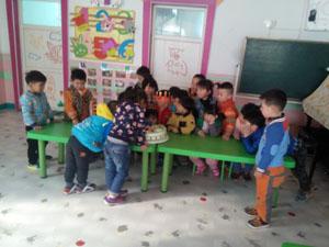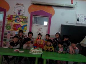 春暖花开的季节,迎来了我们小三班金果果小朋友四周岁的生日,妈妈为果果准备的托马斯蛋糕,还有可爱的熊大,熊二和光头强,都来给果果庆祝生日,和可爱的同伴们一起唱歌跳舞,许新愿,果果的生日好开心啊。原来分享的快乐比蛋糕还甜蜜,在这里老师愿我们可爱的果果健康成长,生日快乐哈。
