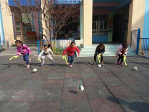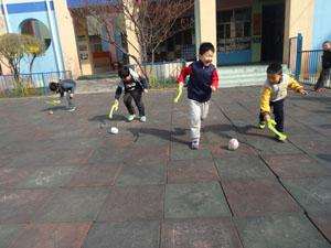 春天的风儿暖暖的,老师带着我们去户外活动《赶小猪》我们分组进行了活动,每个小朋友都拿着“工具”追赶着自己的“小猪”,由于刚开始用力不均匀,掌握不好技巧,“小猪”真是满场飞啊!经过多次的锻炼,“小猪”变的很听话了!很有趣的一个活动!