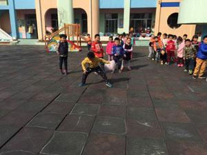 今天大三班的小朋友进行了一场户外活动《跳花格》,小朋友们练习了单、双脚交替行进跳,掌握了简单的动作要领,感受了民间游戏的乐趣,大家玩的都好开心呀!