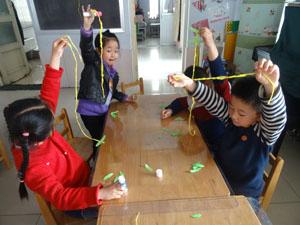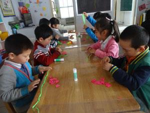 我在这儿等着你回来,等着你回来看那桃花开~~春天的桃花美美的,大一班的小朋友们在制作好看的桃花呢,把皱纹纸剪裁成桃花花瓣好,然后将绿色皱纹纸搓成长条,再用胶棒进行黏贴,看!小朋友制作桃花多好看呀真棒!