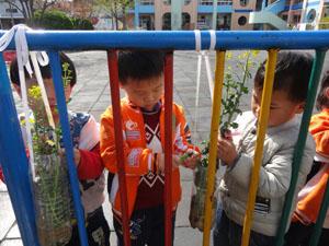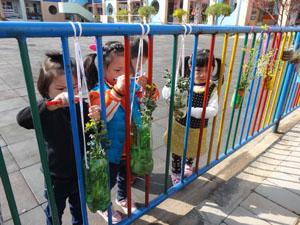 春天来了,天气越来越暖,小二班的小朋友们把种植园装饰的美美的。看,我们用饮料瓶做花瓶,把各种植物装到里面,再挂在栏杆上,还在上面画上美丽的图案,不同的创作氛围更能发挥宝贝们的想象力哦!