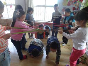 今天我们大二班的小朋友在教室里发现了各种各样的绳子,孩子们将绳子拿在手中探索各种玩法,有的走平衡、有的抛绳子、有的用绳子系蝴蝶结等,孩子们还利用绳子制作障碍,进行勇敢的通过。此活动锻炼了幼儿的创新能力和不怕困难的精神。