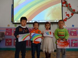 彩虹有几种颜色?什么时间会看到彩虹?今天,小二班的宝贝们带着这些问题一起走进了彩虹王国,变成了彩虹王国里的小精灵。在这里我们寻找到了答案!看,小精灵们用他们神奇的画笔,画出了各种不同的彩虹,可真漂亮啊!