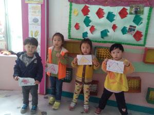 图形宝宝来做客,老师带我们认识了三角形,知道它有三条边,三个角,让我们一起来为三角形大变身吧.看有的变成了可爱的小金鱼,有的变成了漂亮的小松鼠,还有的变成了小彩旗,想想看看还可以变出什么来呢?