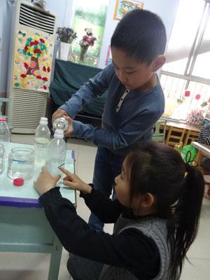 今天我们大二班的小朋友在争论高高细细的瓶子和矮矮粗粗的瓶子哪个水多,于是我们一起用实验来验证,最后得出结论同样的瓶子水位线一样,水就一样多;瓶子不一样,水位线一样,水不一样多;此活动锻炼了幼儿观察能力和辩证思维能力。
