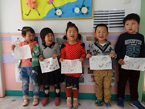 看一看小一班的小朋友们今天用什么作画呢?对了,我们正在用棉签在宣纸上做笑脸,是不是既锻炼了我们的手眼协调能力,还激发了我们的作画兴趣。你找到我们的笑脸了吗?让我们一起笑一笑吧!