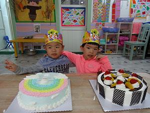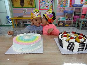 看看今天的两位小寿星是谁啊?他们就是我们小一班里最小的两位小朋友姐姐和弟弟,悄悄的告诉你他们可是我们班里的龙凤宝宝哦!新的一岁里希望两位小朋友开心快乐成长每一天!