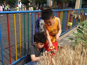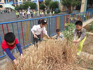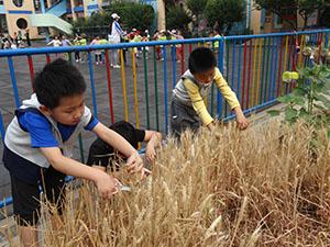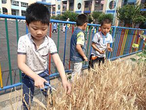 丰收啦,丰收啦,田地里小麦子终于在大家的辛勤劳动下丰收啦,大一班的小朋友天天望,日日盼,看到麦子丰收啦心里都特别的高兴,在张老师的带领下,小朋友们分组去收麦子,用小剪子把麦穗剪下来,再把麦秆剪下来,这样就成功的把麦子收获啦,太开心啦!