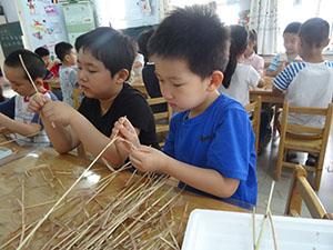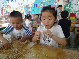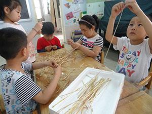 我们收获了麦子,心里都很开心,老师带着我们把麦秸上的叶子清理干净,准备编织一些手工作品,小朋友们都特别认真的工作着,咦!宁文希发现了什么?原来呀是一只小虫子,虚惊一场~~~~