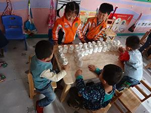 今天小一班的小朋友们在教室开展了“好玩儿的纸杯”游戏。看我们的小脑袋里是不是满满的全是惊喜啊!高高的高塔,长长的长龙。由于一开始桌面的空间太小,我们就想到一个好办法去地面。哈哈!地面还没有摆满我们的纸杯就不够了。下一次我们要准备更多的纸杯,期待我们的合作成果吧!