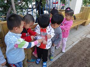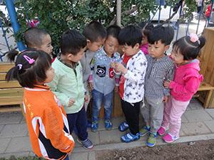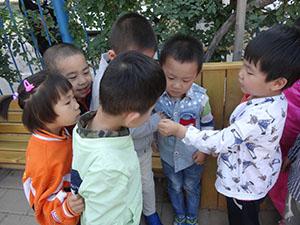 今天小一班的小朋友们一起去菜园观察菜宝宝。瞧他们发现了什么?原来是条小毛毛虫,俊俊小朋友发现并大胆的拿在手里的。拿在手里请小朋友近距离观看,还想请小朋友也摸摸它,可是小朋友们都有一些胆怯。只有他胆子大,还给小毛毛从找了片青叶并把它带回班里继续请小朋友观察。小一班的宝宝收获可真不小,不光观察了菜宝宝还观察了虫宝宝并且了解了一些虫宝宝的生长环境,还知道了它是害虫。