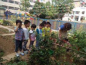 今天天气不错,我们一起去菜园里看看我们的菜宝宝吧,哇~西红柿宝宝穿上红色的外套向我们招手呢!你摘一个我摘一个,我们的小筐子里满满西红柿,我们要把它们带回班。先给西红柿宝宝洗洗澡,红彤彤的西红柿宝宝太可爱啦!我们为西红柿宝宝找来好朋友—白糖、梨、苹果,水果大party开始啦!