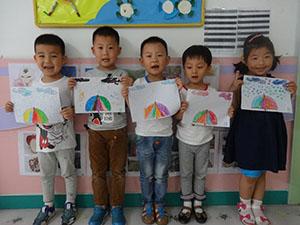昨天晚上小雨滴一点儿也不客气的敲打我们家的窗户,好像想要我说什么?今天我们小一班的小朋友就用雨伞把它请到我们的画纸上了。看小雨滴一个接着一个跳的多么欢快啊!每个小朋友的雨点朋友也不一样哦!猜猜看那个是我喜欢的。