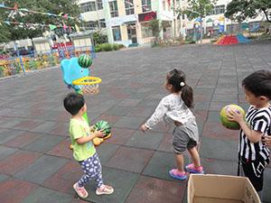 今天我们小一班的小朋友们,在老师的带领下一起来到户外的活动场地。看我们今天的新伙伴会变高的“球筐”,你一定能够猜得出我们将要进行的活动——投篮。在规定的距离内,在老师的指导下我们轻轻的把球抛向篮筐,一二三进一个吧!哈哈!似乎球在挑战我们的耐心,总是不近球筐。而我们也总是乐在其中,不断的尝试着!加油小一班!