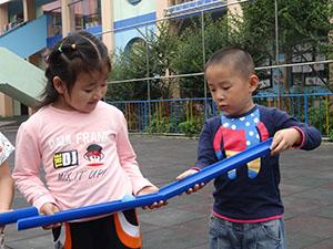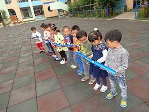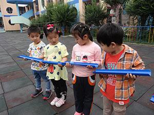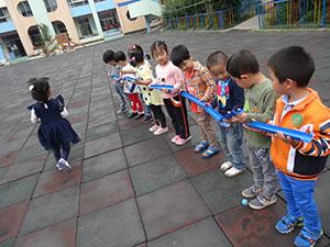 今天小一班的小朋友们幼儿园的在院子里拍了一条“长龙”,猜猜看我们在做什么这么全神贯注的!这是我们的新玩具“传递小球”,看我们小心翼翼的让小球从这边慢慢经过手上,一直慢慢滚到远远地那边。相互配合才能让小球越滚越远。此游戏活动锻炼了幼儿的专注力,提高协作默契。