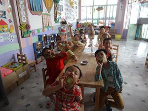 地黄瓜绿莹莹,开朵小花黄澄澄。今天中一班的我们到种植园采摘了两根成熟的地黄瓜,地黄瓜又粗又大,身上还张满小刺,到了快乐分享时刻了,自个种的黄瓜香又甜,咬一口脆嘣蹦,大家快来尝尝哦!