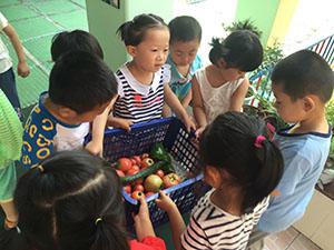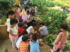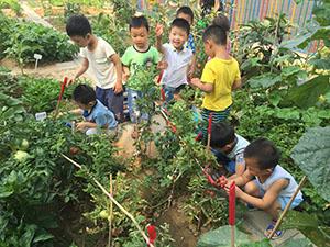 我们摘西红柿,黄瓜,跟着老师刨土豆,一个一个又一个,小土豆就像变魔术一样蹦出来,