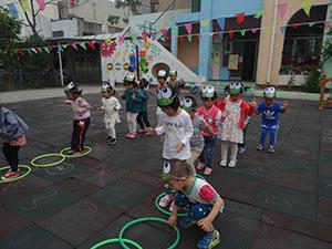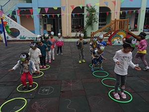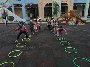 快看,一群可爱的小青蛙跳过来了,小五班的宝宝们通过练习双脚立定跳,掌握了基本的动作要领,使自己的身体更有协调性并按照基本的规则进行游戏。