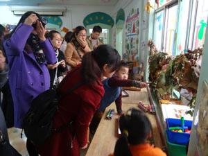 李园长首先向大家介绍了幼儿园的基本情况及办园特色,之后李园长和吕园长带领大家参观了各班的环境创设、文化长廊、及各班开展的区域活动,参观的园长、老师们沉浸在了农大幼儿园利用农大资源、家长资源打造的绿色教育之中,深深地被幼儿园的浓厚特色氛围所感染。
