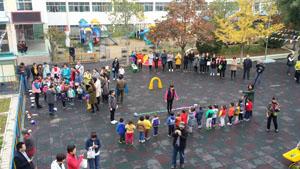 早上7:30,全园幼儿和300多名家长陆陆续续来到幼儿园,开始了紧张有序、开心快乐的活动。